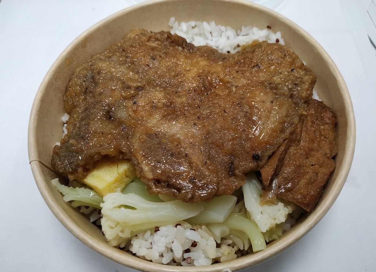 飯有些許藜麥,吃起來像有淋上雞汁、鹹鹹的很下飯。