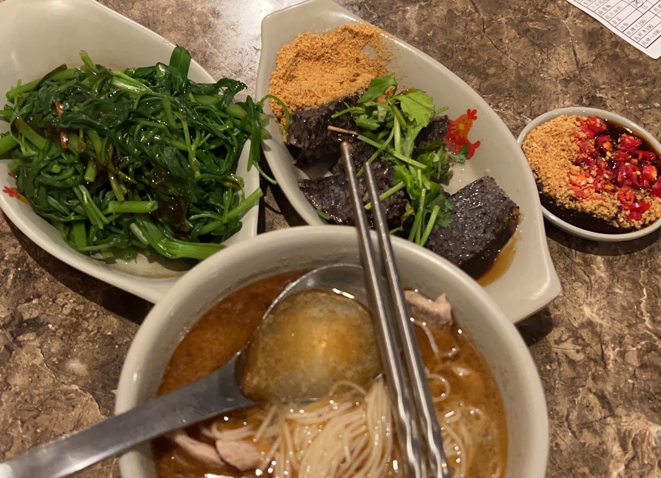 這是一家外面很普通的商店,但裡面卻提供最美味的食物。推薦麻油雞湯,尤其是冬天,大家都會來喝湯或者湯麵。
