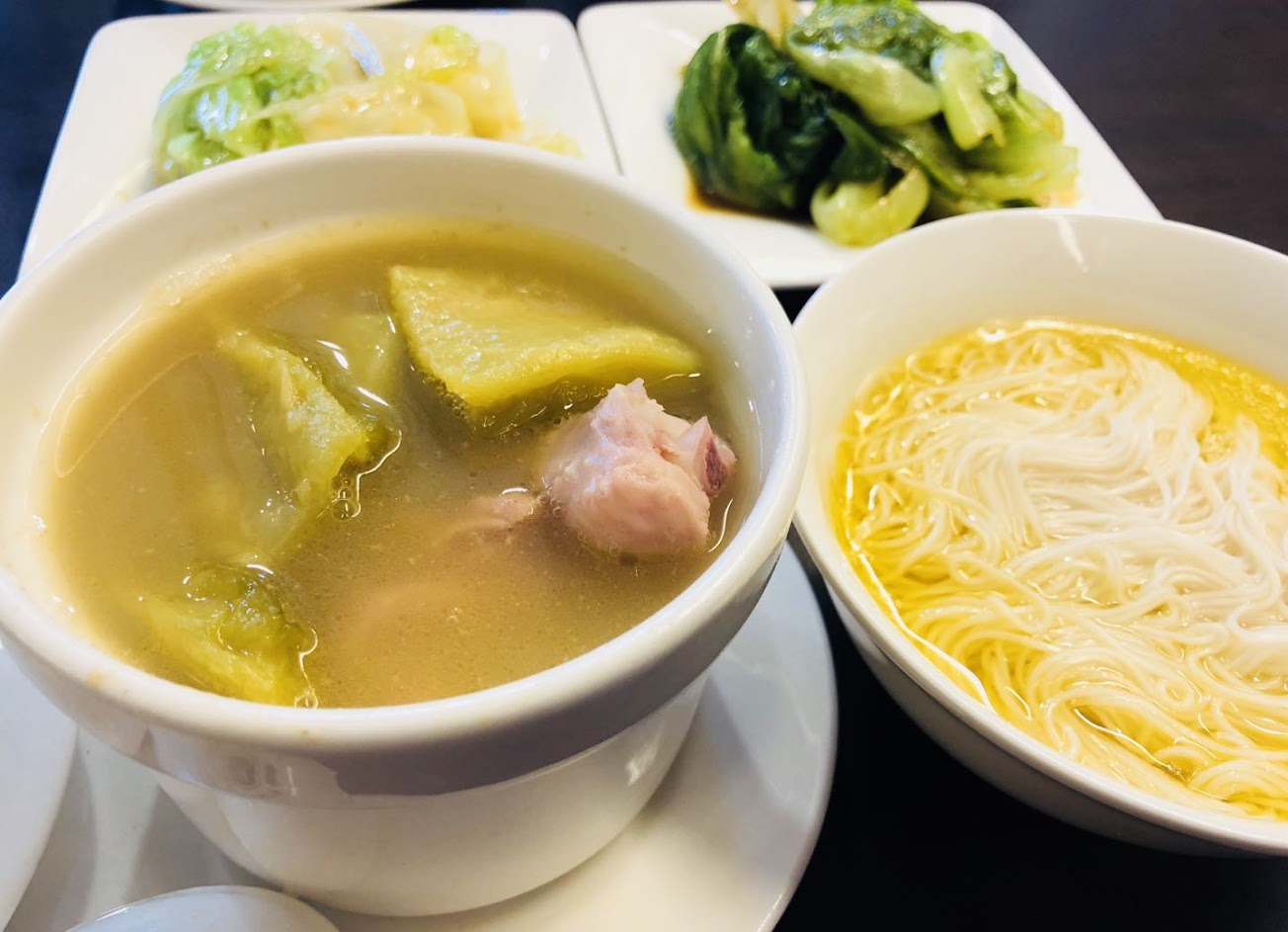 雞湯超好喝!尤其是蒜頭雞 非常濃,是金黃色、上面會有膠質凝結成膜的那種,蒜味也很濃,加了竹笙更好吃?? 雞肉也不會乾柴 有很多種口味可以選,常吃也不會膩??