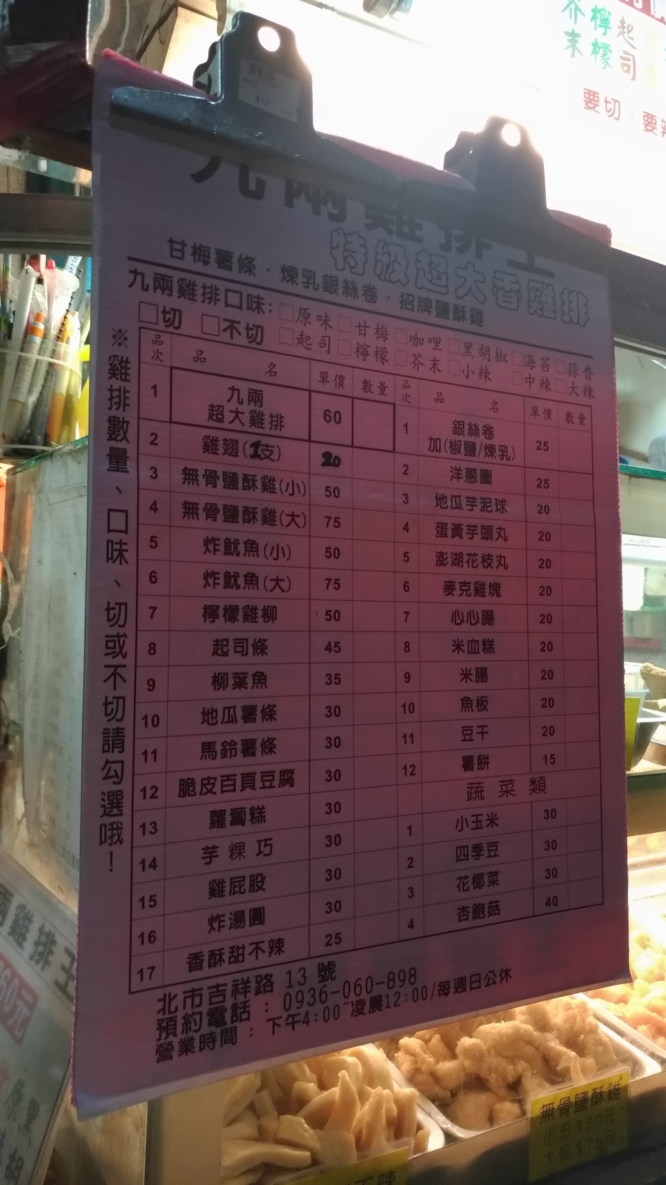 2024最新在地推薦餐廳的菜單_九兩雞排王的菜單、圖片