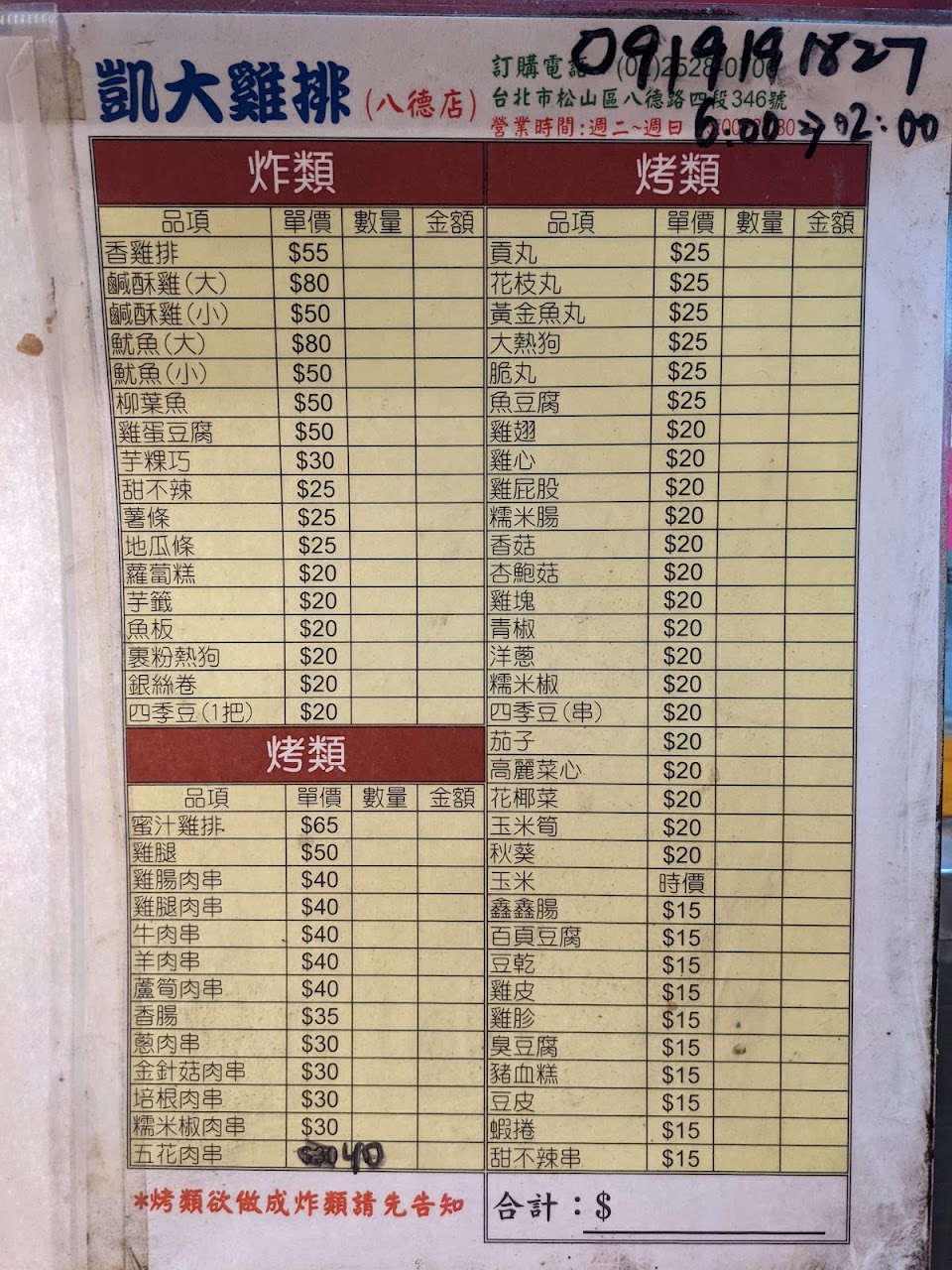 2024最新在地推薦餐廳的菜單_凱大雞排的菜單、圖片