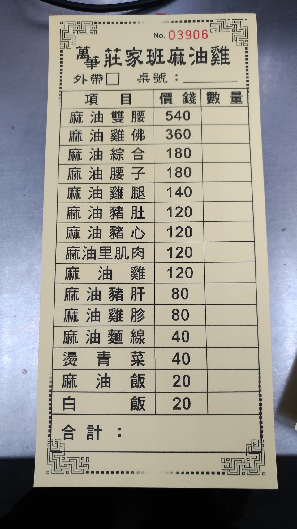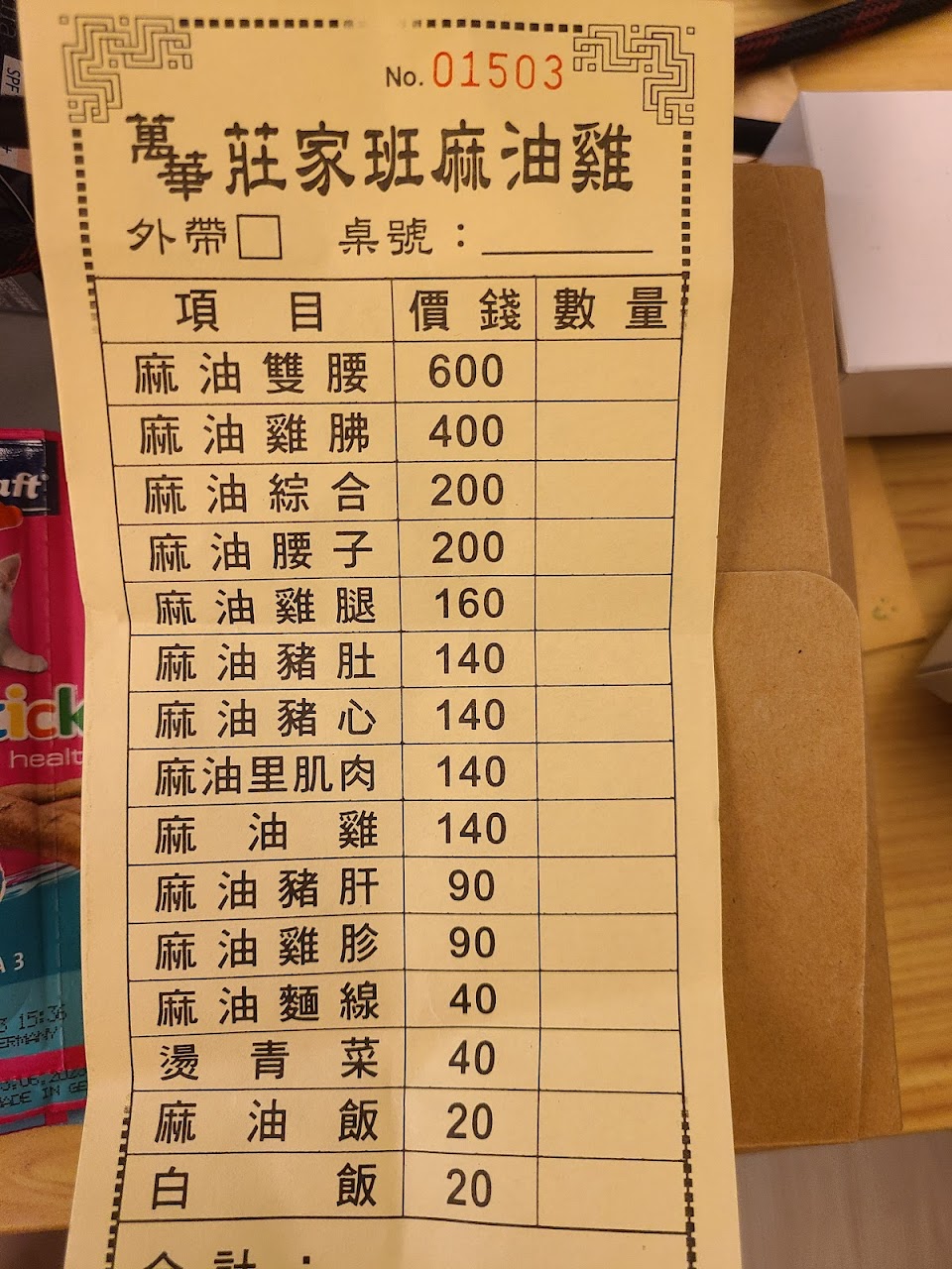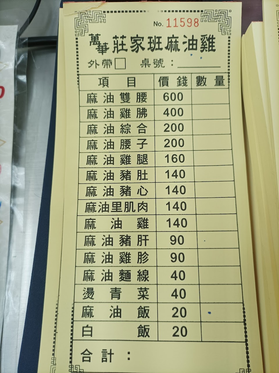 點了麻油綜合200元