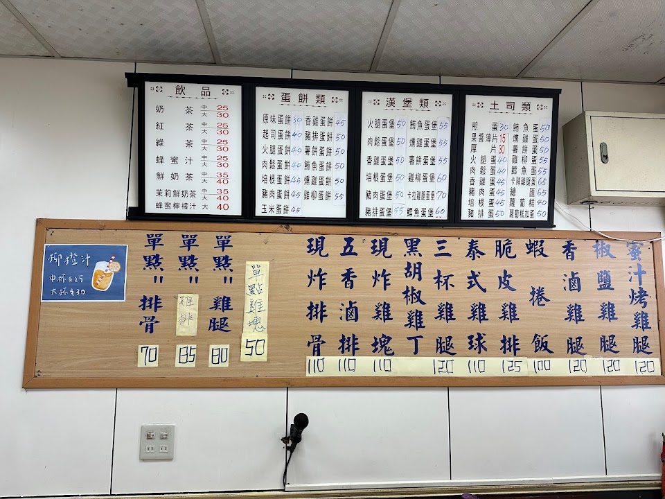 早餐蛋類都漲五元,原味蛋餅沒有蔥 蒜蓉醬油30$。午餐雞肉類都漲10元。椒鹽雞腿便當120$附湯或飲料。