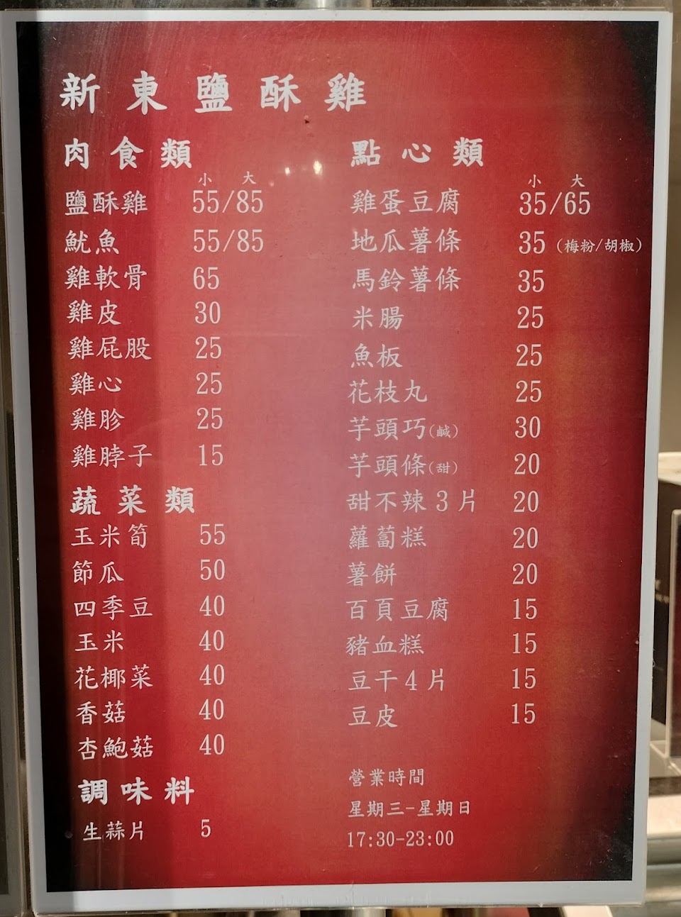 2024最新在地推薦餐廳的菜單_新東鹽酥雞(紅牌)的菜單、圖片