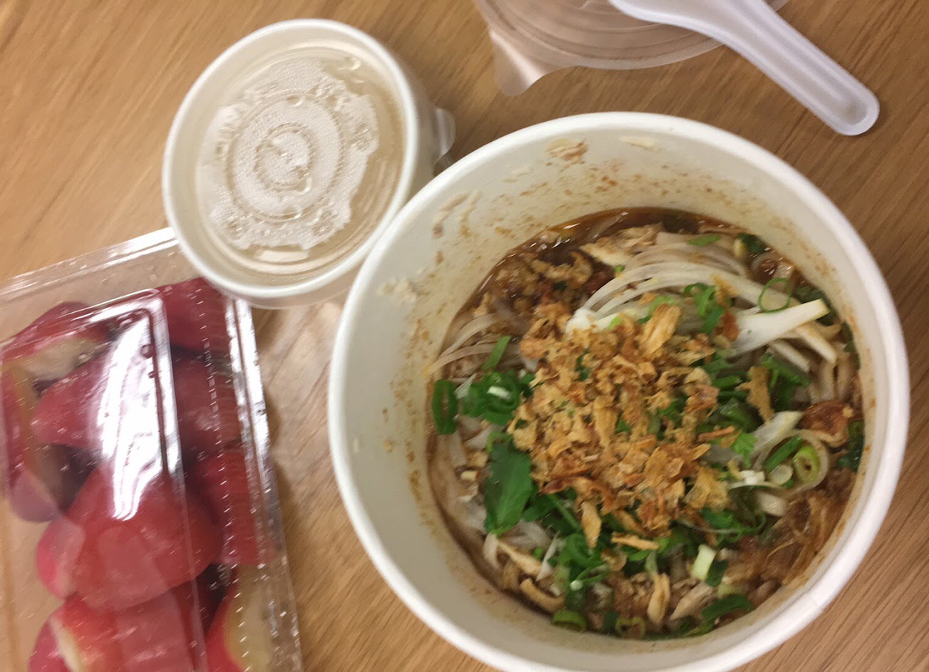 湯頭非常美味!單價偏高但還是想持續來光顧(可能因為我都點生牛肉+牛丸這種比較貴的品項)。 很特別是還可以加價加一顆生雞蛋,湯麵一上桌立刻把雞蛋攪散,湯頭會昇華到另一種境地,但外帶就算了,沒有及時將蛋攪開的話,回家就只是裡面有一顆蛋而已……