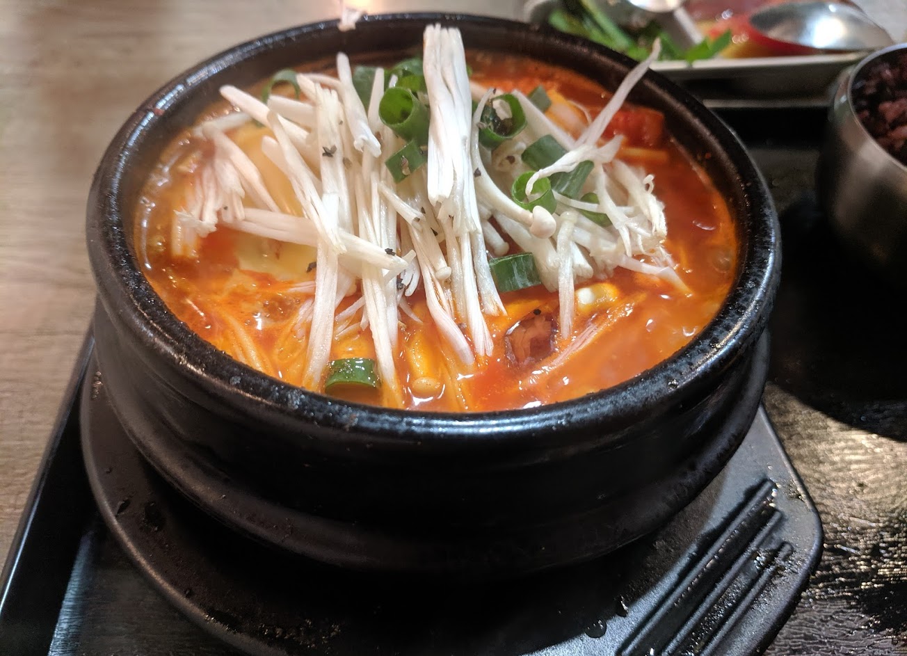 這個地方很小,午餐時間需要排隊30分鐘。工作人員非常友好和敏捷,我們得到了一罐雪碧作為排隊時間的補償。 食物很美味,價格也很合理。豬肉拌飯和豆腐泡菜火鍋都令人滿意。我們要求額外的泡菜,他們給了足夠的,而且味道很好! 肯定會再回來,但希望有韓國麵條菜單,不要排那麼長的隊?。