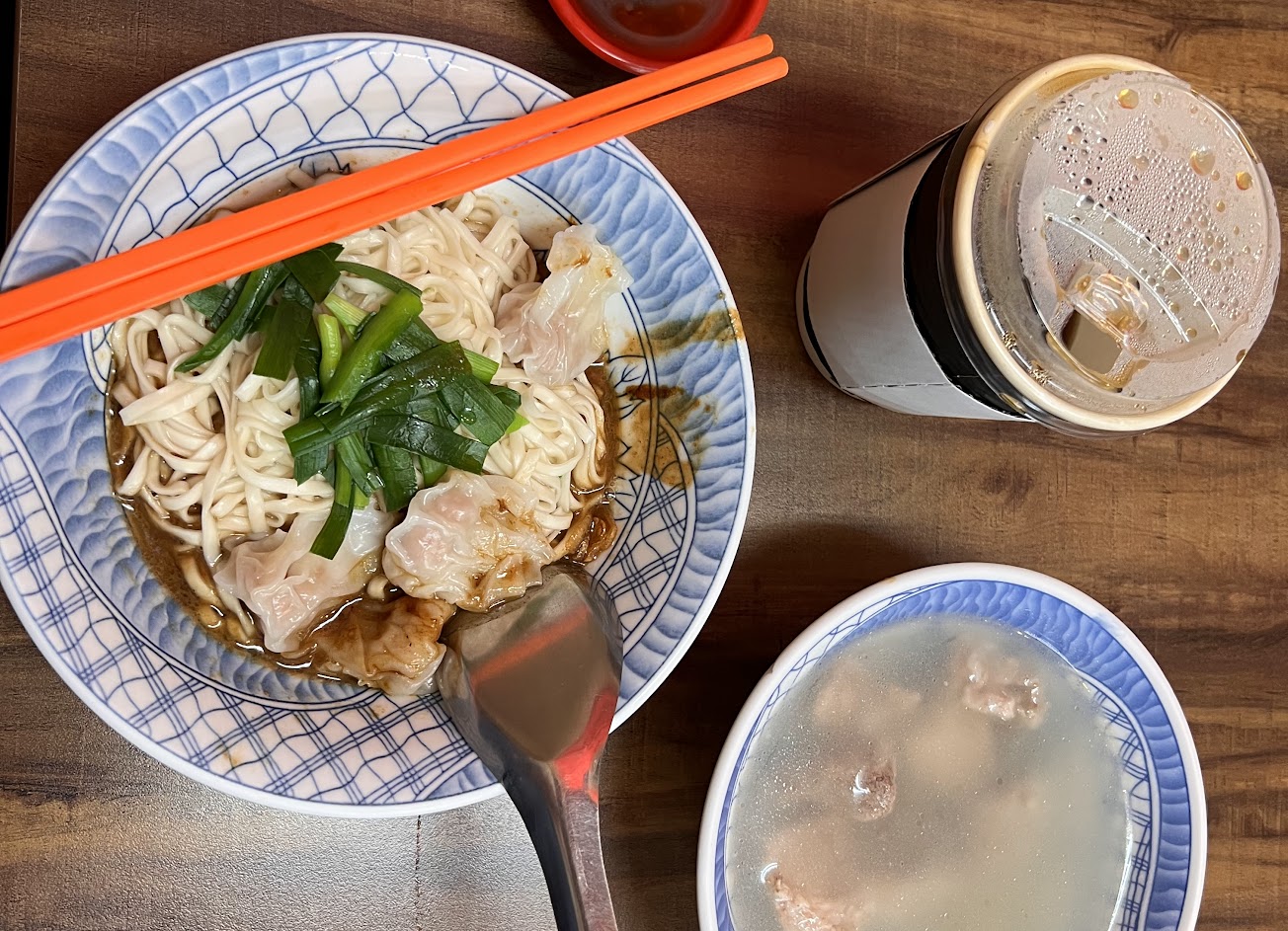 店門口:麵香、餛飩味、高湯氣味,端走喜歡的小菜,淋喜歡的調料。吸著乾麵,囌嚕囌嚕,是歷史的濃厚,也是飽腹的民粹。