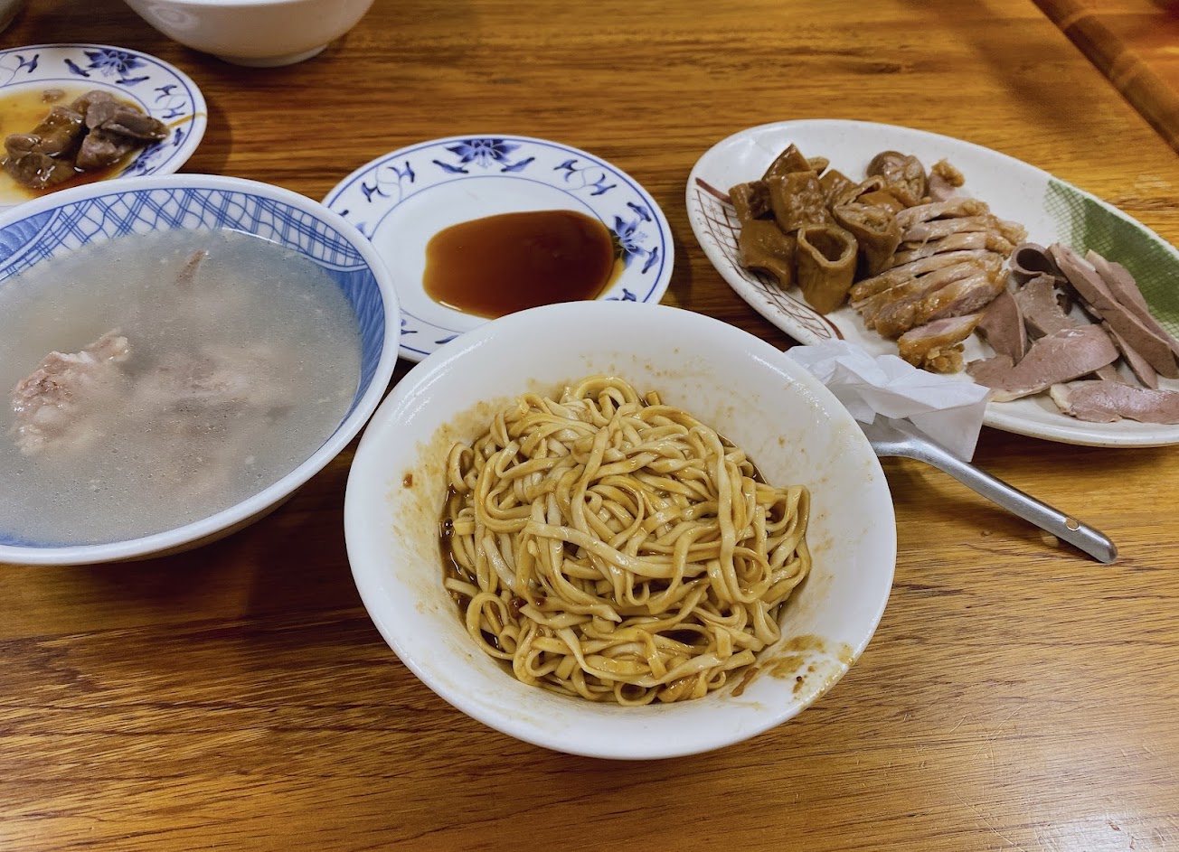 乾麵是四種醬,上網查是由炸醬、麻醬、秘制鹹水、油蔥酥豬油組成,味道很夠,口味清淡的人可能覺得略嫌。肉骨湯清爽,小菜都蠻好吃的,推薦豬尾巴,口感很好!下午人比較少不用排隊!店家態度很親切,沒有老店名店的傲慢了,大推!