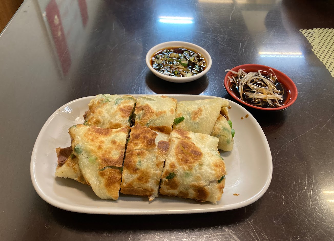 蔥油餅有微微蔥抓餅的筋道, 本體軟香不乾好入口, 即便蔥味不重, 但表現不錯, 想不到哪裡有類似的味道, 讚一個?
