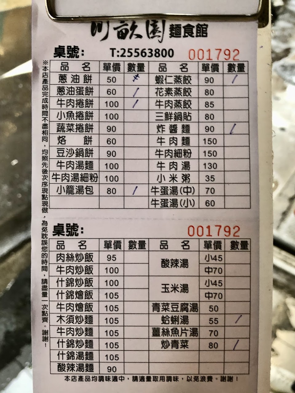 固定會並桌要有跟陌生人一起的準備,餐點捲餅類用的就招牌蔥油餅! 餐點的1.牛肉捲餅的餅皮有蔥油餅的香,蔥新鮮牛肉軟嫩不乾。 2.炒青菜可以選鵝白菜.空心菜.高麗菜,菜色油亮熟度剛好。 3.蝦仁蒸餃內餡還有蔥香,內餡湯汁油香味道濃郁。 4.小籠包皮薄但不容易破,要小心被內餡湯汁燙到。 5.酸辣湯可以選加不加香菜,料有蛋皮.紅蘿蔔絲.脆筍.黑木耳絲.金針菇.板豆腐.豬肉絲。 6.三鮮鍋貼餡料飽滿多汁,偏豬肉吃不出海鮮味….
