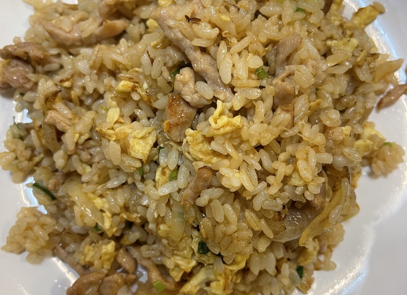 ?什錦炒飯(90元) 主要配料包含火腿、蝦仁、肉絲, 且配料的量給的很多, 不會躲起來讓你找不到的那種