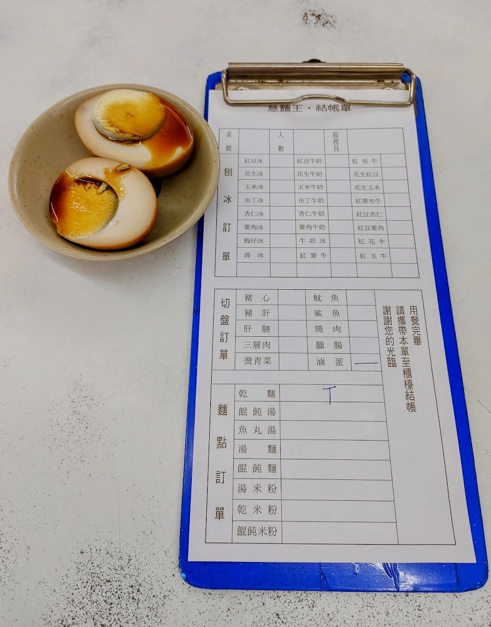 一開始點餐,菜單上半部分都是剉冰,有一種來到冰點的感覺,往下一看才是正餐,我很喜歡這個乾麵肚子餓的時候可能要大碗才能滿足,上面的醬料甜甜很合我台南人口味,魚丸湯餛飩湯鹹鹹好喝,肚子餓一碗可能也不夠喝,我喜歡這種肉片薑絲醬油膏的簡單組合,就是老饕餐。