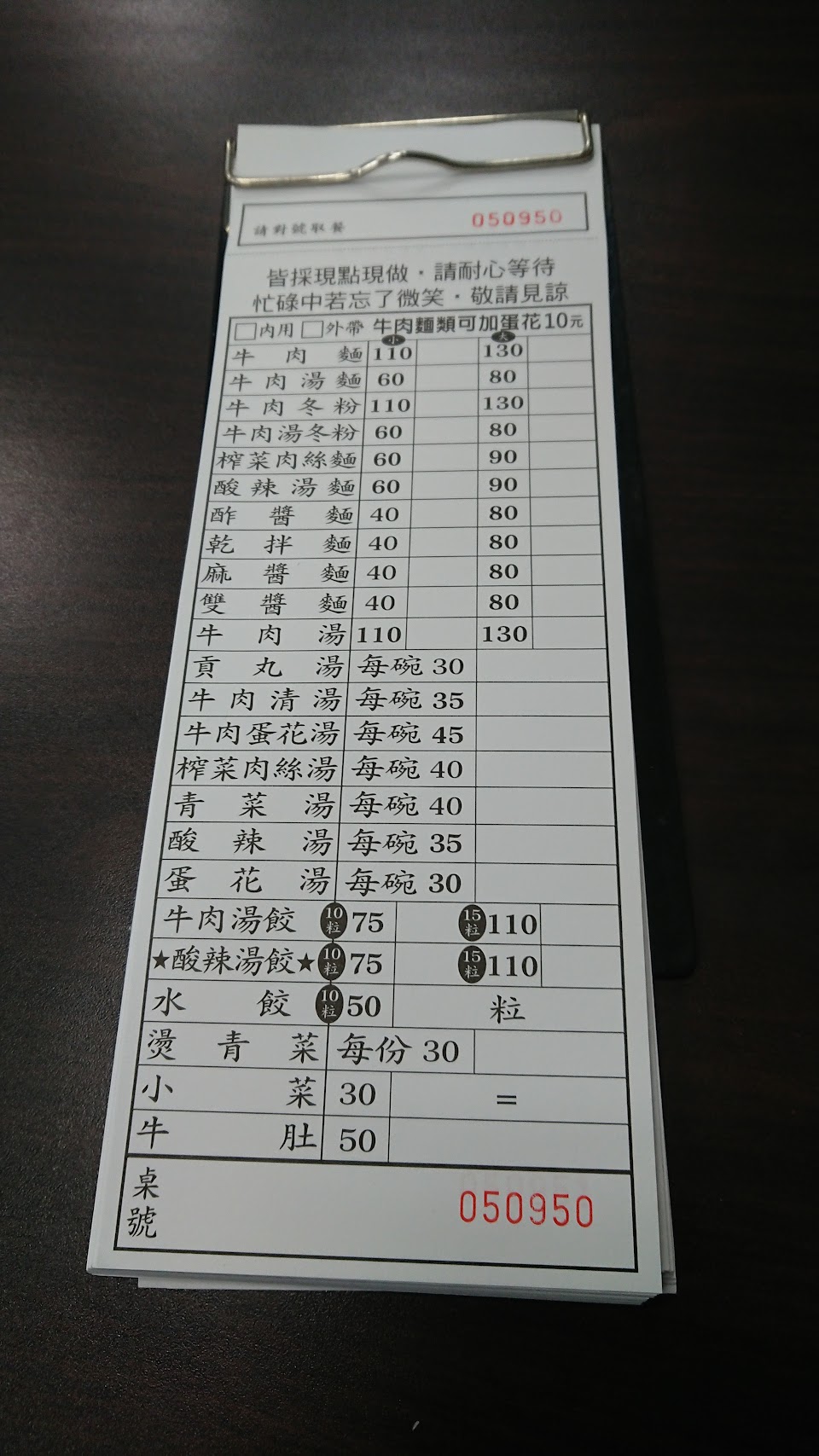 麵條有彈性,牛肉嫩而不柴,小菜很好吃。遇到帶小孩的顧客會主動提供小碗方便父母分食,上餐也會注意孩子的位置並避開。
