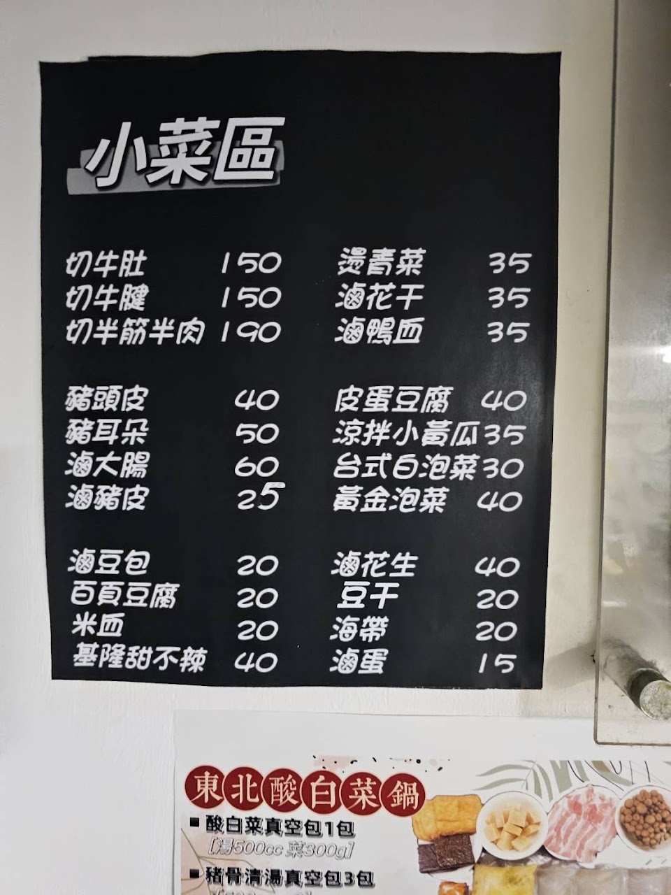 112/5/9進門前就有聞到一股很重的酸味,想不到只是買個燙青菜跟腿庫肉就中…腿庫肉有的是冰的有的溫的…吃一口也是略顯臭酸,拿回去給掌廚的聞,似乎聞不出來…問我需不需要換一份給我…我怎麼敢…我不需要清腸胃…謝謝八字鬍胖廚師…