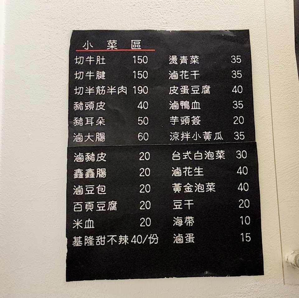 基隆甜不辣 滷豆包 魯蛋 燙青菜 魯蛋 紅燒牛肉麵 蕃茄烘蛋麵 番茄炸醬麵 絲瓜蛤蜊湯 蘭花干 滷豆包