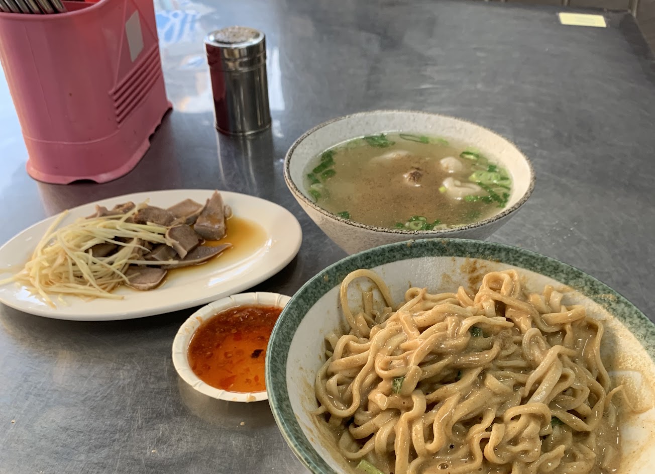 原本想吃的老麵店沒開,經過這間查一下評價不錯就進來吃看看 結果,意外地好好吃喔!! – 招牌乾麵(粗麵條)炸醬+麻醬 喜歡有嚼勁的麵,所以這間麵條很可以! 香氣很像維力炸醬麵,只是吃到後面還是會有一點點膩(同行友人覺得不會)、所以我下次來我應該會嘗試豬油乾麵 – 嘴邊肉 原本覺得60有點小貴,但是份量有比一般在外面吃的50元還多一點,而且口感有一股滑勁,真的比其他外面吃的好吃還有特別。 – 餛飩蛋花湯 最後最後,我最大推的是餛飩蛋花湯,餛飩本身沒有其他什麼蔬菜很單純的肉團,味道非常夠,可能對某些人會有點鹹,但因為其實小小一顆這樣吃下去感覺的是很夠味,一直嚼會有麻油的香氣出來!真的超級讚!再來是他的湯也很優秀,不知道為什麼有一股淡淡的竹筍湯的味道(但店裡沒賣竹筍湯),甜味也不是味素的死甜,反正也好喝好驚艷,重點老闆很佛心可以加湯喔!