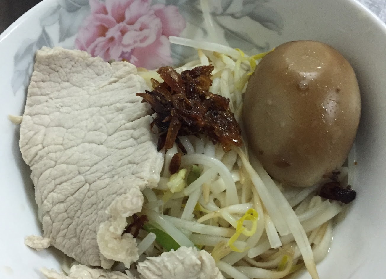 ❖ 乾米粉+肉+蛋($40+10+10)川燙的米粉拌入自製的油蔥,加上些許的豆芽菜,單純的古早味,好吃。
