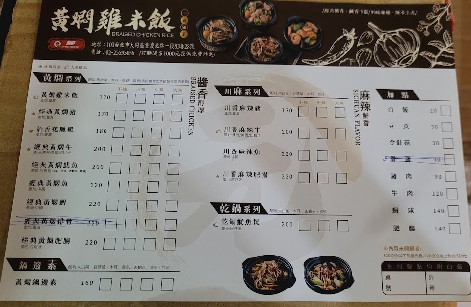 經過時發現到,好奇什麼是黃燜??,但還是敵不過無辣不歡的慾望,選擇外帶了麻辣??,拿到食物有點?湯汁都外溢出來,搞得有點髒,回來品嚐後,就是麻辣燙,口味對價格有點抱歉 …