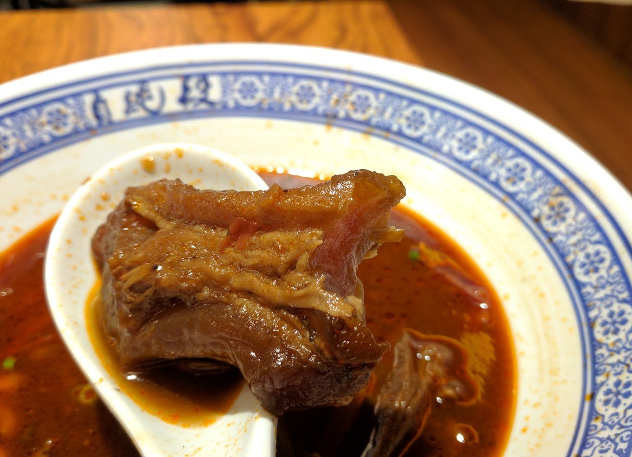 牛腱燉得很軟好吃,湯頭是帶麻的紅燒,有點像麻辣鍋