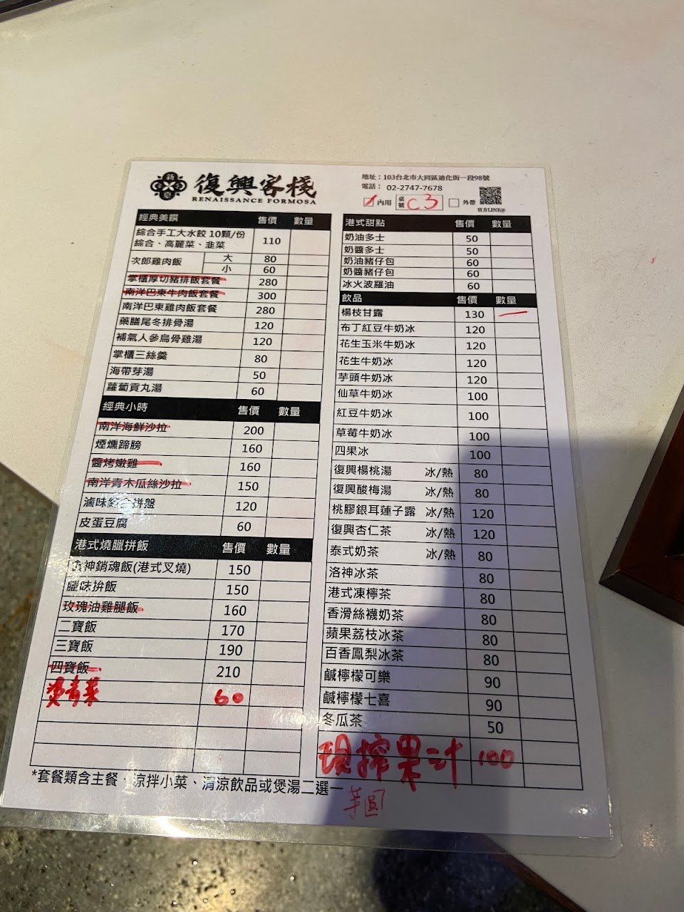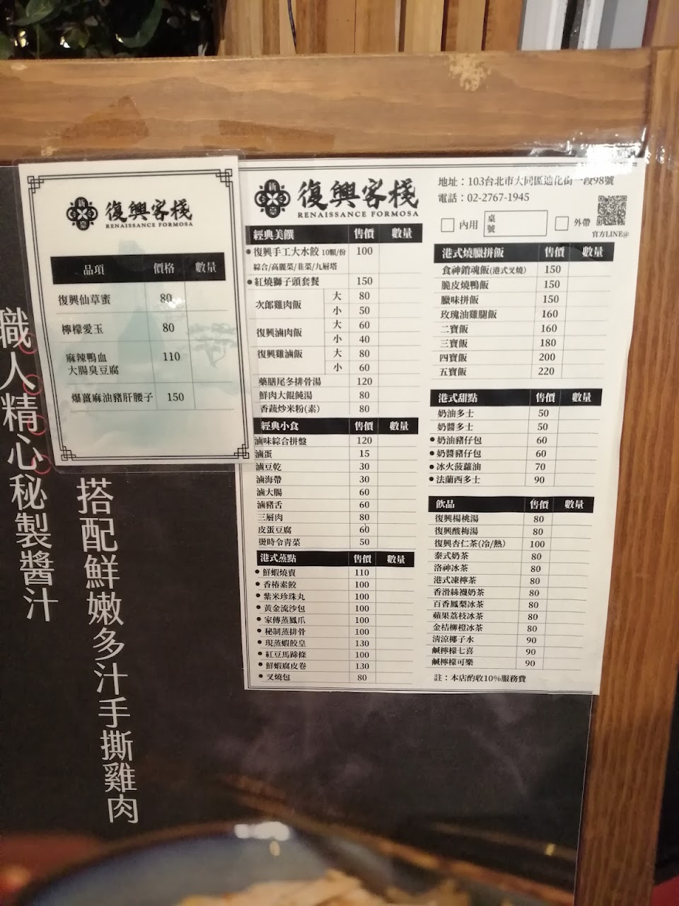 2024最新在地推薦餐廳的菜單_大稻埕|復興客棧 Renaissance Formosa的菜單、圖片
