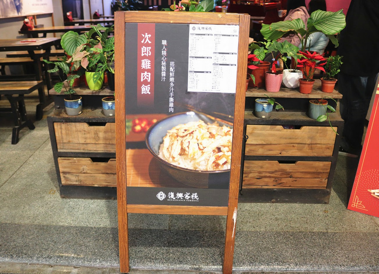 復興客棧位於台北市大稻埕,客棧的雞肉飯,肉多又大塊,白飯香Q可口,餛飩湯湯頭鮮美餛飩好吃,小菜也滷得十分入味,當逛迪化街逛累時非常適合到復興客棧歇息並品嚐美味餐點!