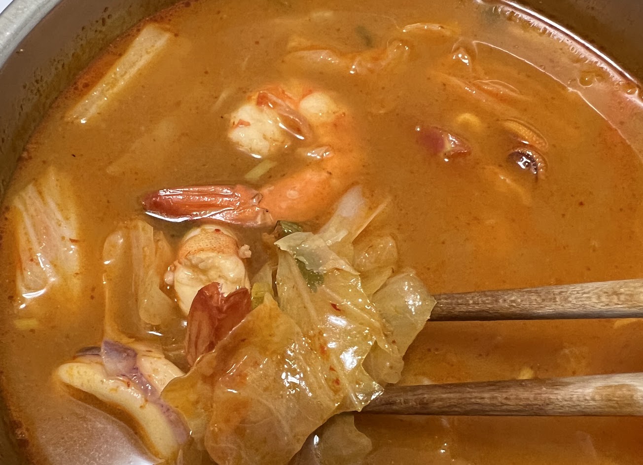 酸辣海鮮湯媽媽麵的湯頭不會太辣