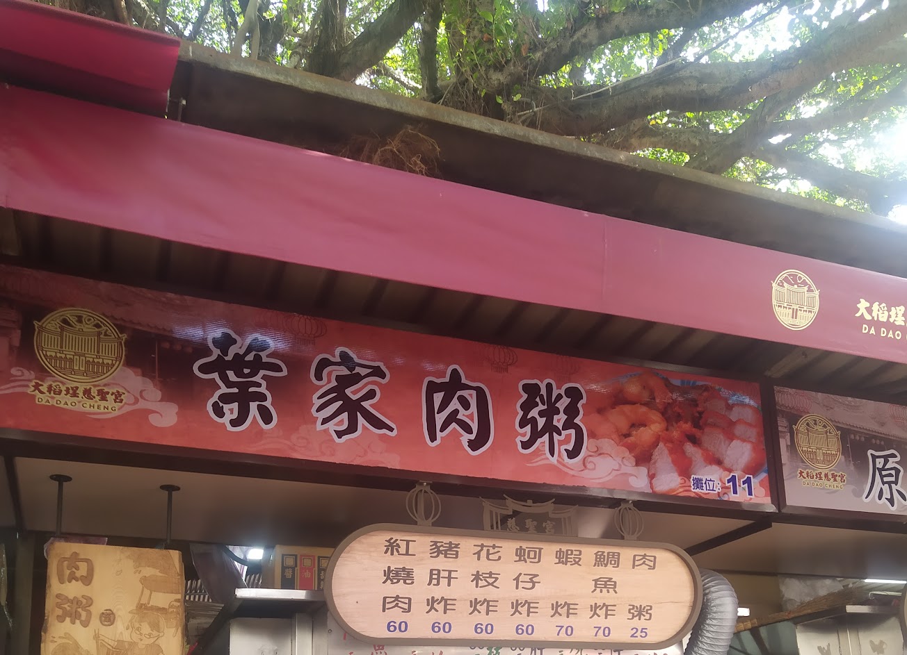 葉家肉粥開在大稻埕的廟前面的廣場 假日可是很多人的,若人太多的話店家的桌子會不夠 這時候可以再去附近的店家點他們的東西,這樣可以坐在他們的桌子 今天是平日的9點剛開的時候來的,因為是上班是所以整間廟前的廣場都沒什麼人 點了肉粥、紅燒肉和炸豬肝 肉粥的話比較清淡,口味不像其他的那麼重,也比較像飯湯的感覺,就不像其它的粥一樣飯煮到爛 紅燒肉的話還蠻好吃的,肉蠻紮實的,可以搭配旁邊的醬和泡菜來食用 醬我覺得還不錯,酸甜的感覺不會辣,沾肉吃很好吃,能解膩,泡菜的話也還行,能解膩 炸豬肝是蠻驚喜的,因為幾乎沒腥味,炸的很好吃,咬下去是作軟嫩的 味道的話有一種蠻特別的味道,要講的話很像台南煎魚腸時吃的到的味道,還蠻奇特的 算是一個驚喜,值得回訪 服務 內用 餐點類型 早午餐
