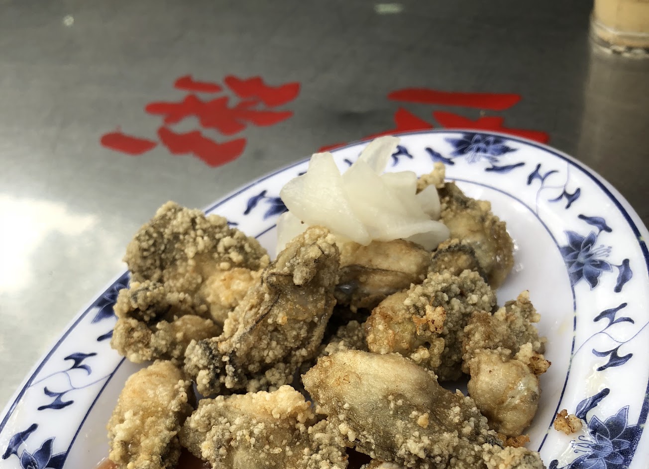 蚵仔和豬肝都很新鮮,但豬肝炸好就上桌,油濾的不夠,吃完盤子都是油,還好炸物都有附醃漬白蘿蔔片。