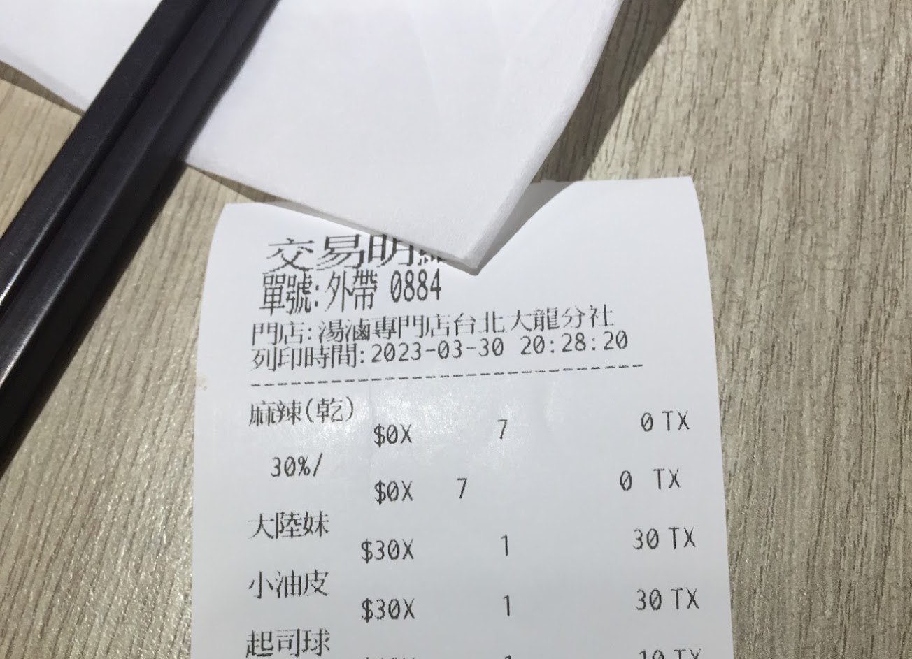 點完餐後要注意外帶明細