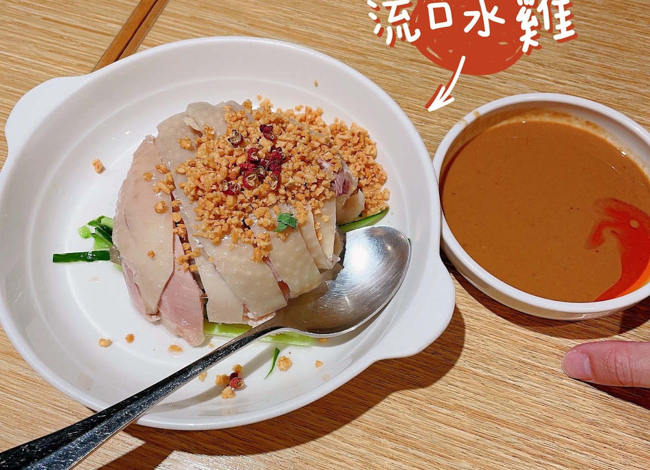?流口水雞:特選仿土雞淋上獨門芝麻醬汁與辣油,也是超級下飯的一道,很喜歡他的芝麻醬汁。