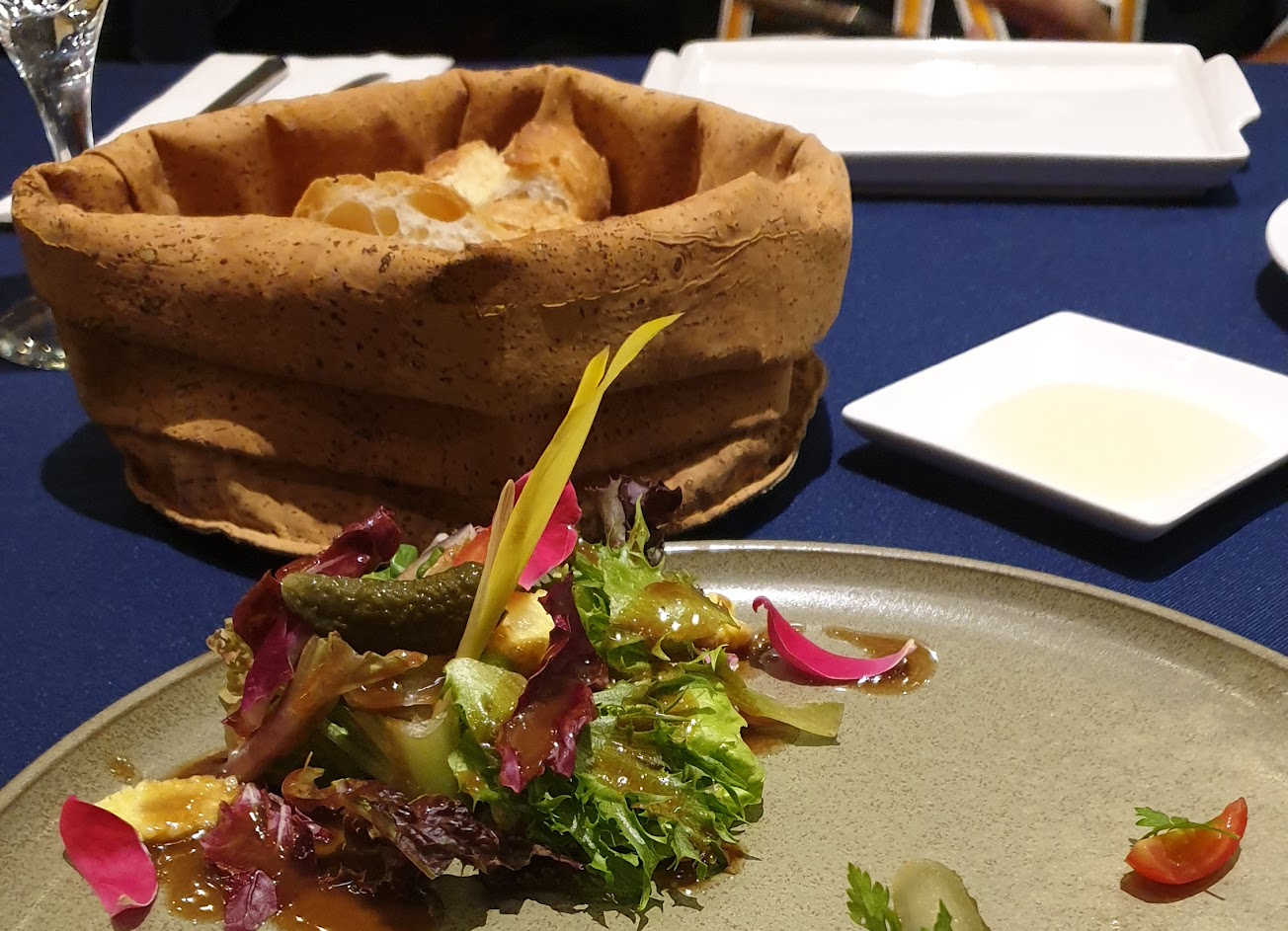 建築有特色,前菜都好吃,味道剛好。餐點中的主餐推鴨胸,鴨腿跟龍蝦都太鹹了。