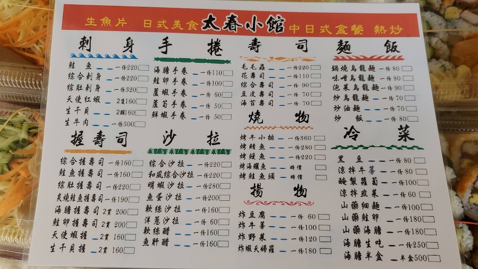 地點在雙連市場的裡面,太春的日式料理便宜又好吃,所以平常客人就很多了,因為在市場內所以環境就個人觀感,還是算還蠻乾淨的,喜歡吃日式料理一定要去嚐嚐