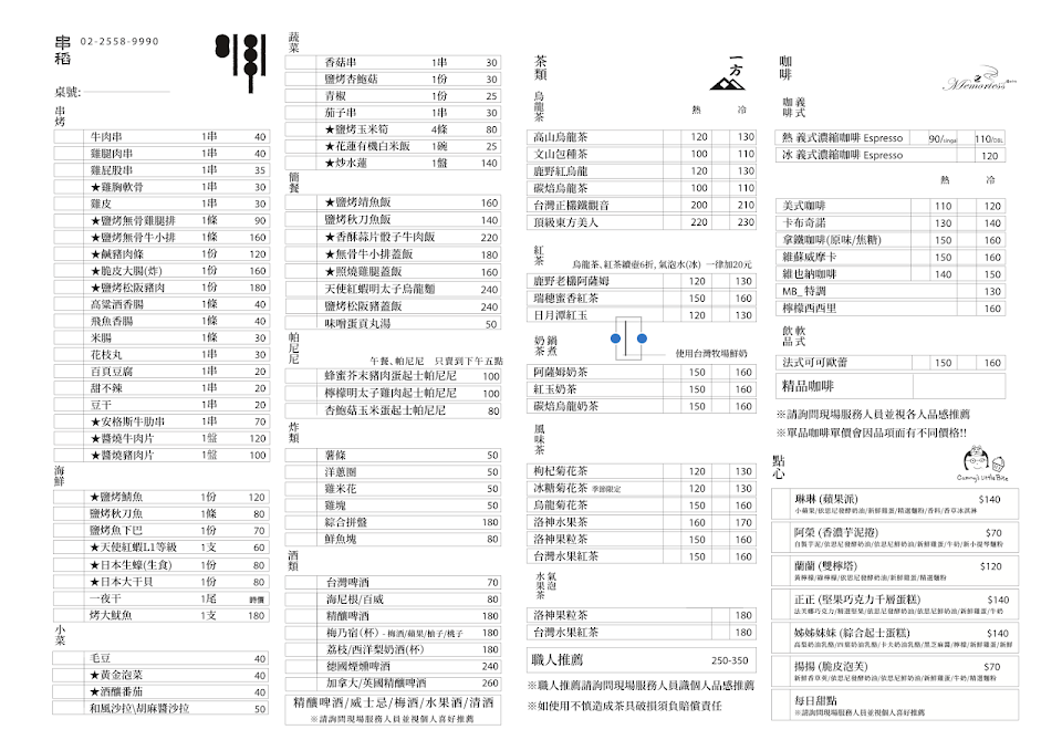 2024最新在地推薦餐廳的菜單_串稻-大稻埕串烤居酒屋的菜單、圖片