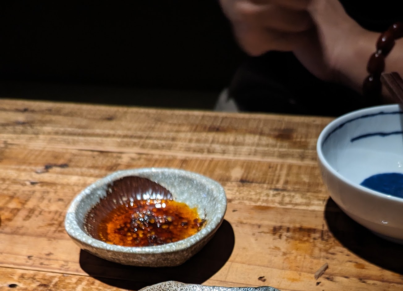 小小的店面,清酒好喝!餐點部分~自己超的辣椒油很香,但炸物還要再加油~~當天吃到的炸牡蠣、雞皮、軟骨、薯條~~都不夠酥脆,調味也比較淡一些,因為是要下酒的,還是稍微重口一點更適合!!