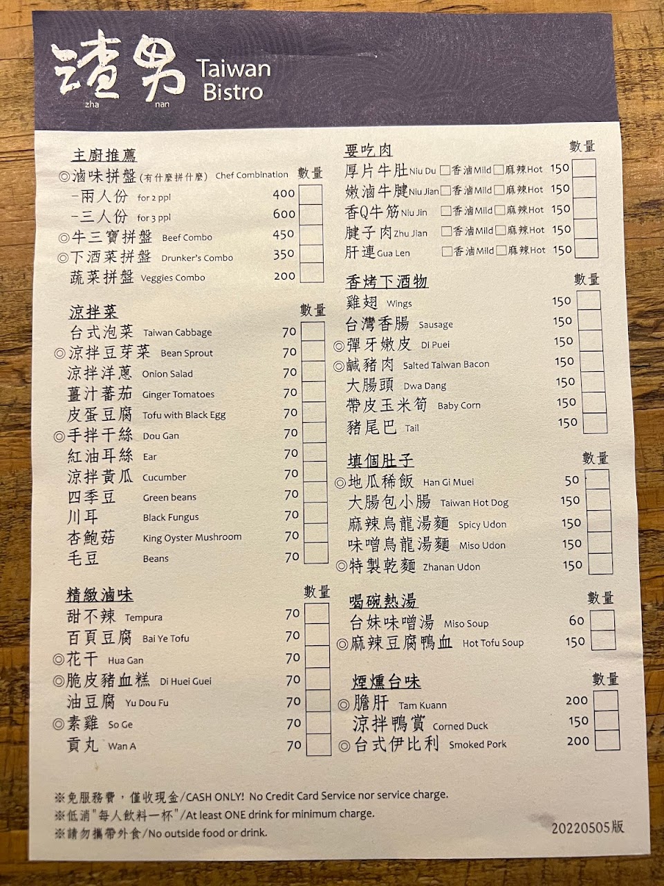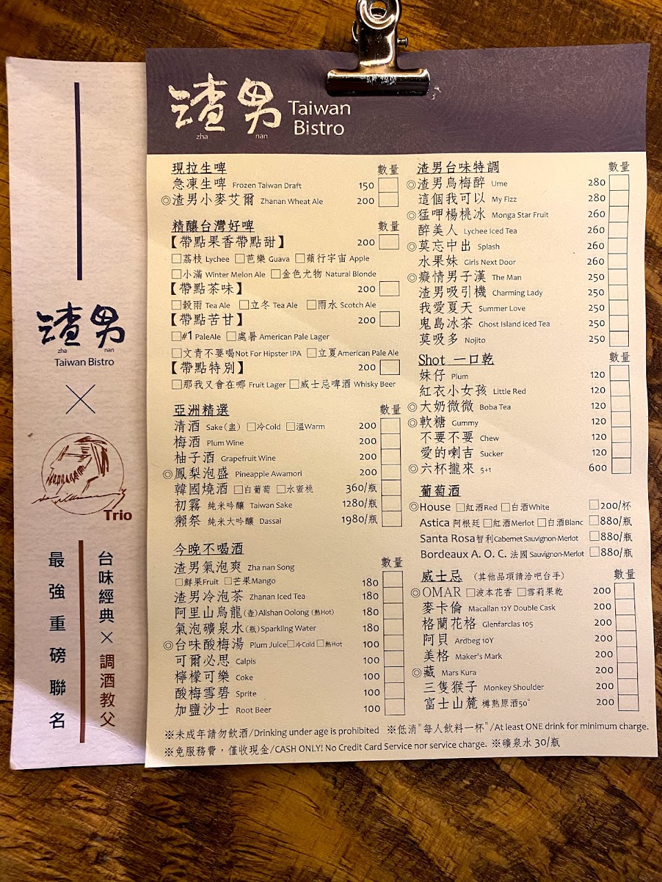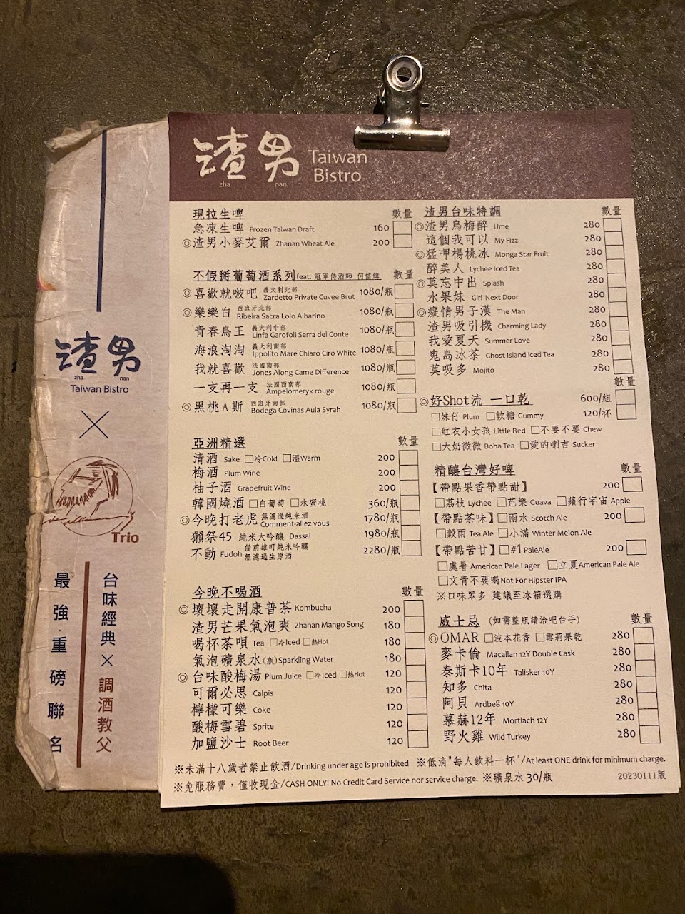 2024最新在地推薦餐廳的菜單_渣男Taiwan Bistro 中山店的菜單、圖片