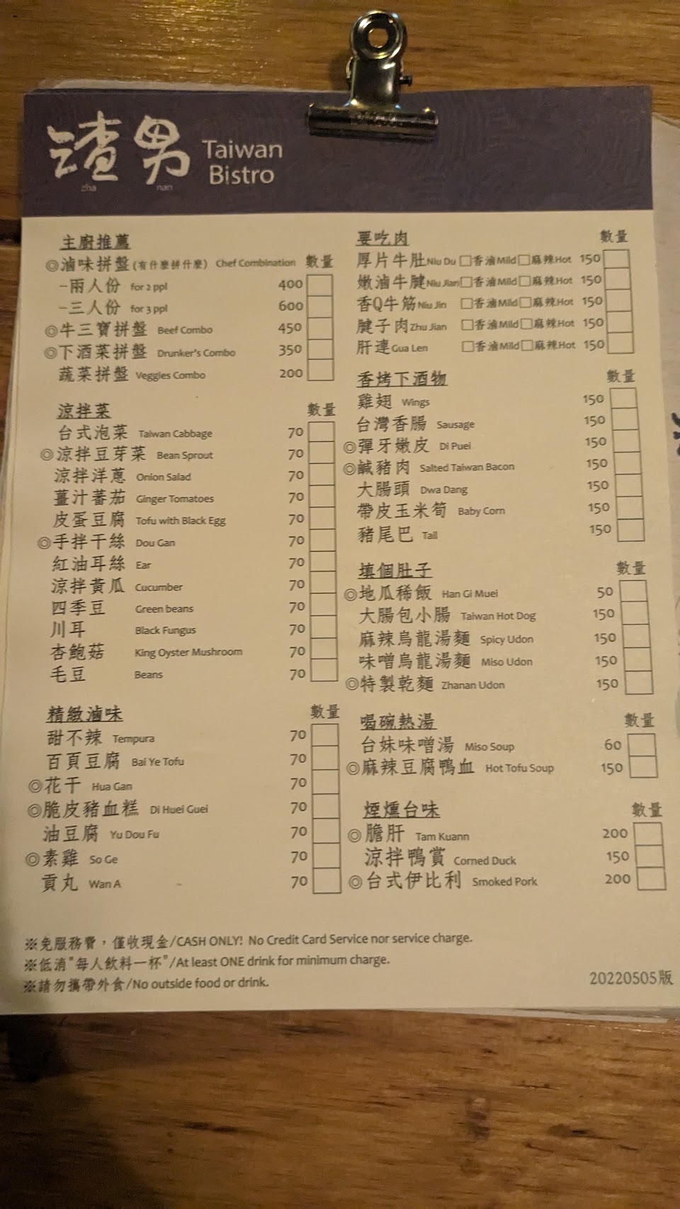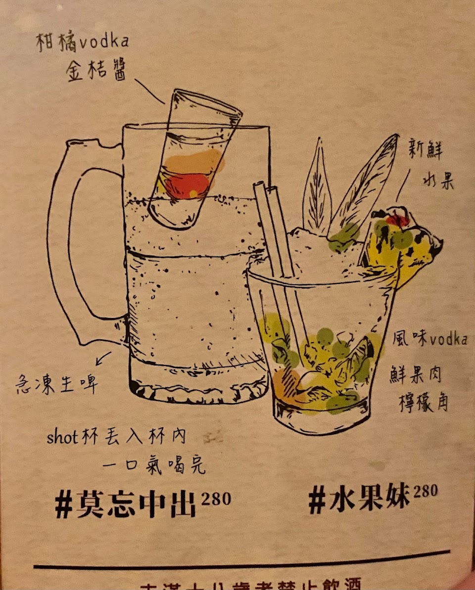 低消一杯飲品,下酒菜跟食物大都台式類型