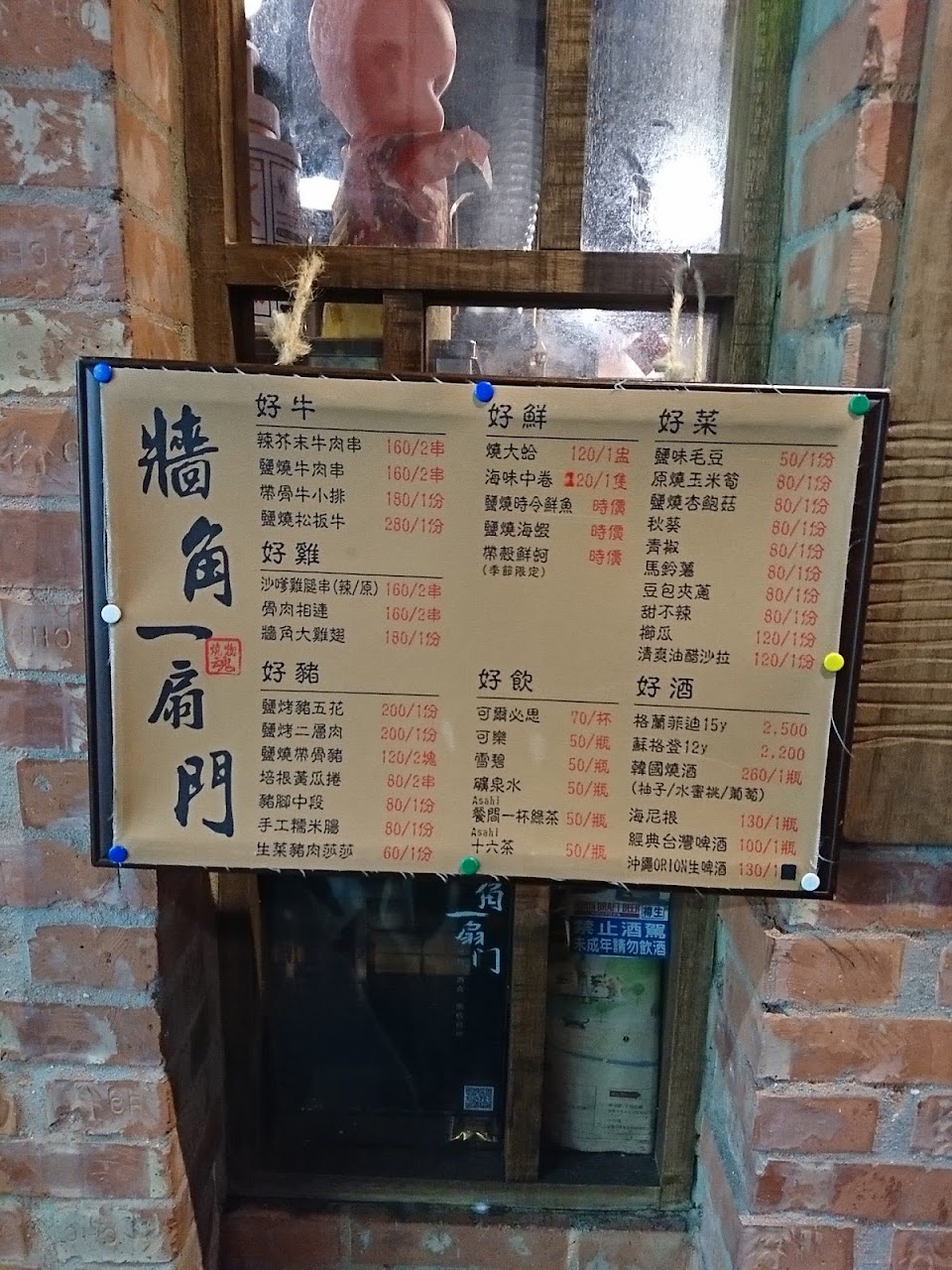 朋友推薦特來嚐鮮一下,裝潢復古的氛圍,主要以燒烤為主,由於只有老闆一人負責點餐、烤物、送菜、結帳,部份燒烤食物難免有火候掌握不佳的情況,人均消費約NT500~800以上!