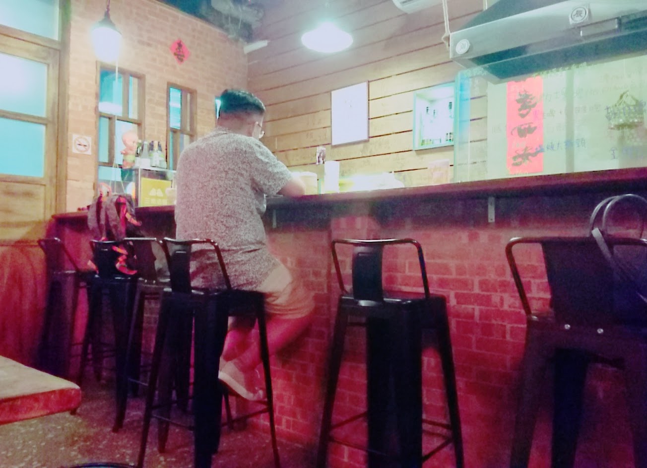 老闆一人好忙~ 但還是會照顧到客人!!先烤幾樣,跟妳聊聊天!!重點東西也好吃!!!很台式復古的店!! 吃完才發現沒拍食物XD
