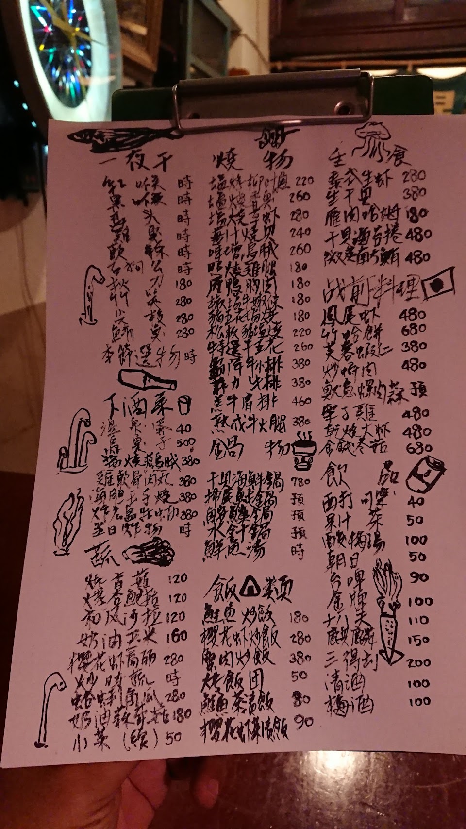 食物精緻好吃 但價格相對偏高 一夜幹是主打 吃起來像蘭嶼半風乾的飛魚乾再煎烤 屋內裝潢有意思