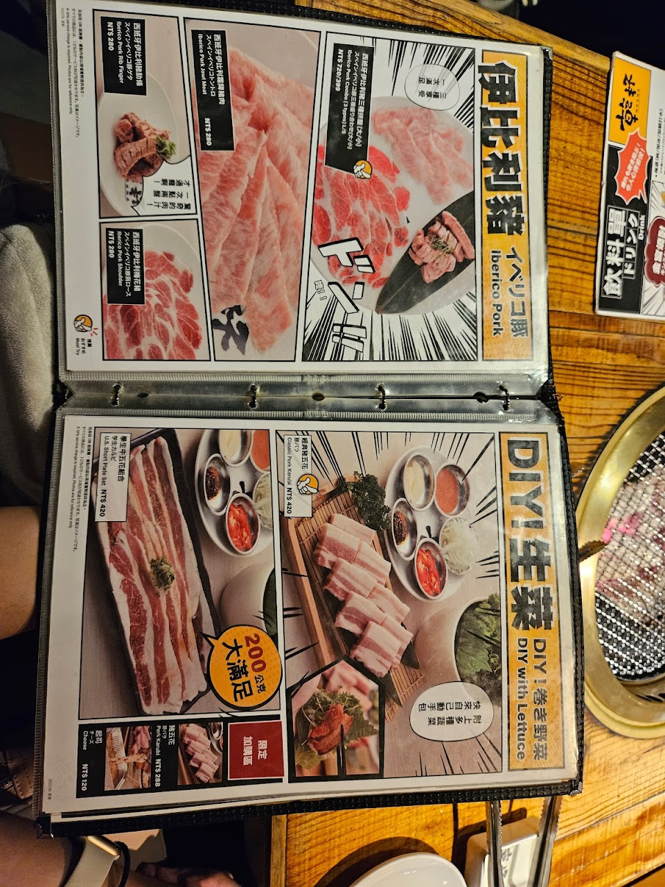 1.5小時很趕,要看菜單、點餐、烤肉⋯