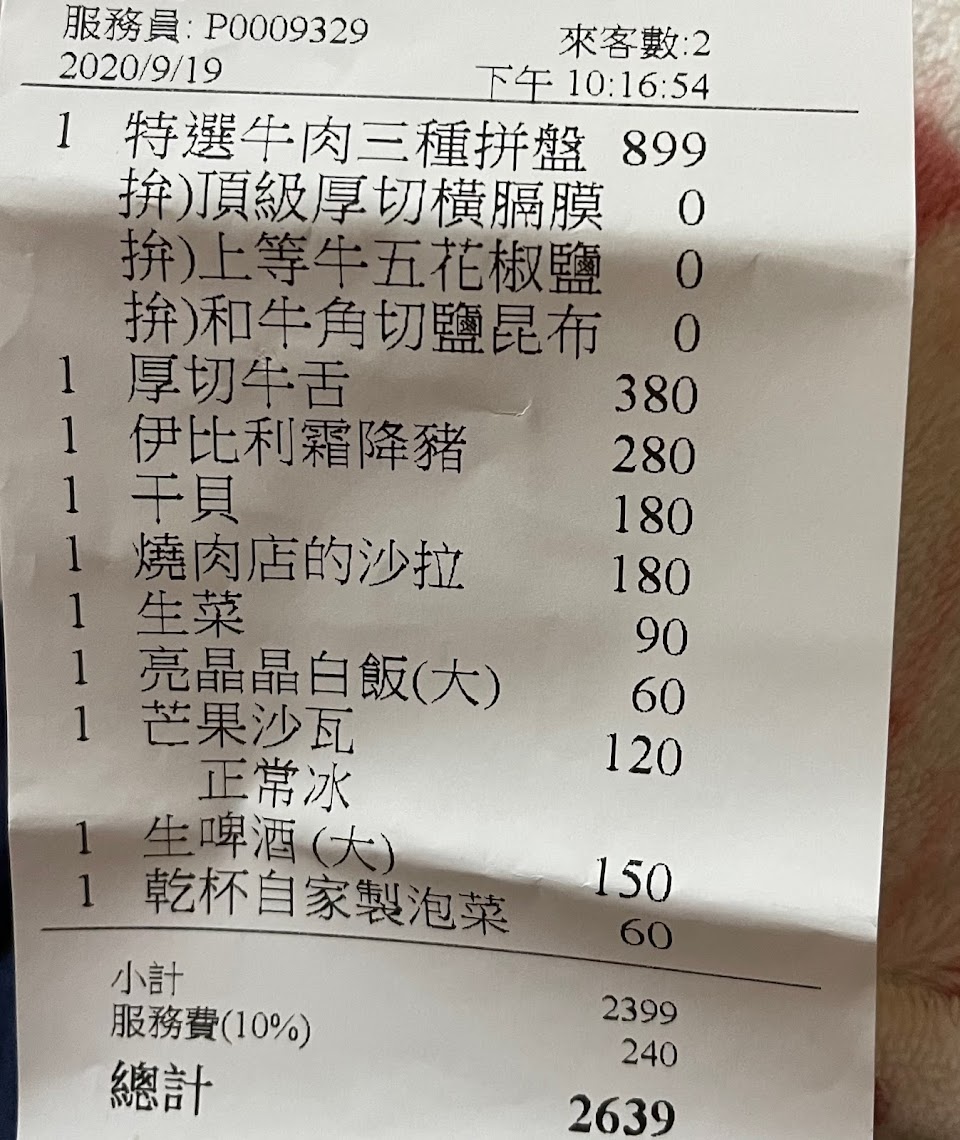 沒事的,這年頭臺北吃燒肉結個帳沒有破萬都不算盤的?