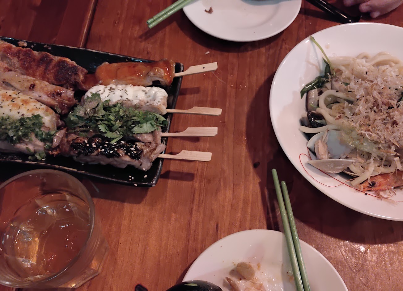食物好吃(鹽烤豬五花、雞肉串、花枝、唐揚雞) 菜單隨意點都不會踩雷,酒水價格也實惠 用餐時間也沒有甚麼限制,氣氛輕鬆 下班喝一杯好去處 (位置不多,內用可能要等)