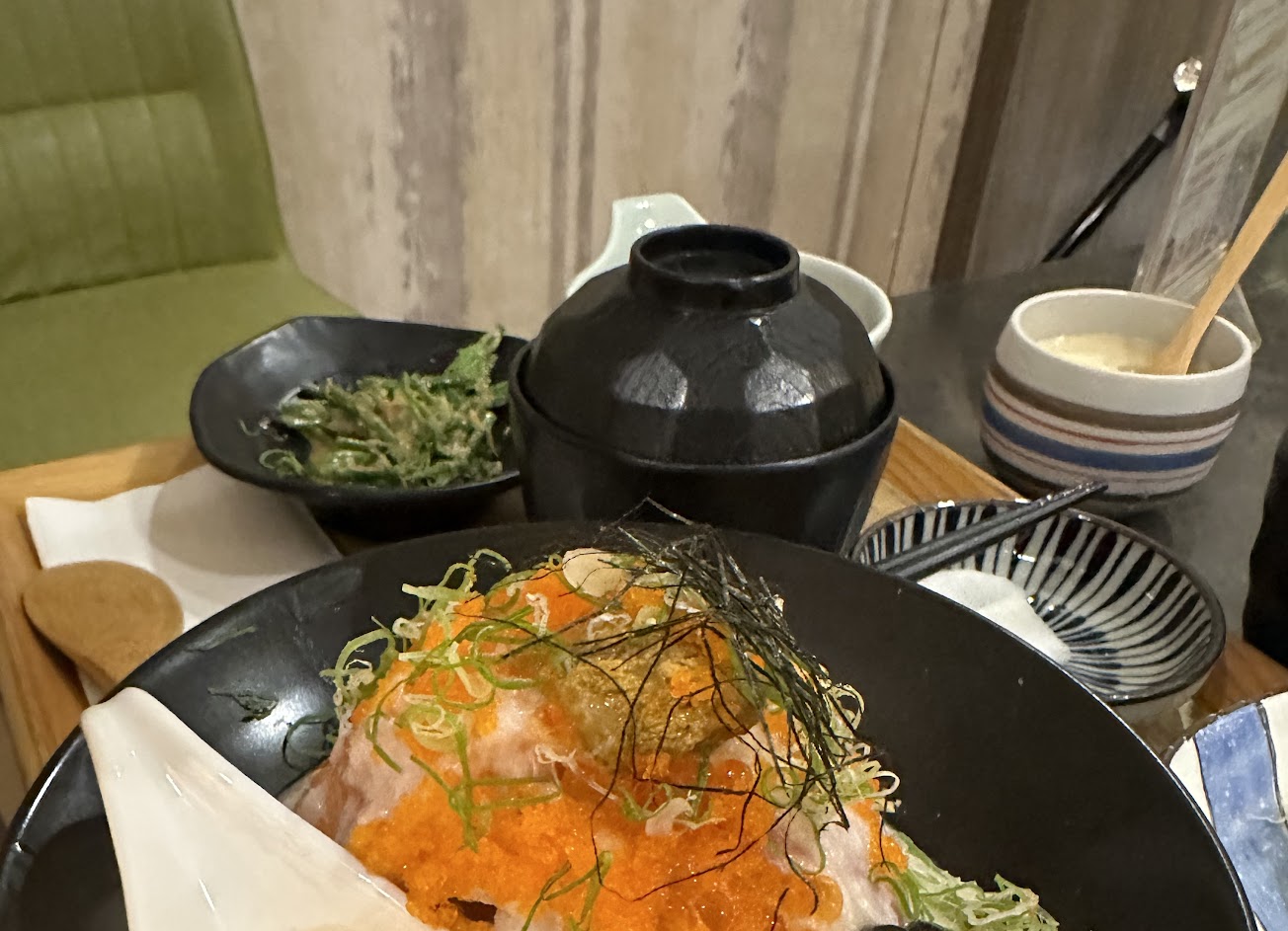 上菜速度慢,毛豆上菜快但前菜和丼飯差28分鐘才上,中間沒東西吃只能看廚師在忙碌?心裡想是不是再做我的?,吃完前菜才告知丼飯沒有醋飯改普通白飯可以嗎?