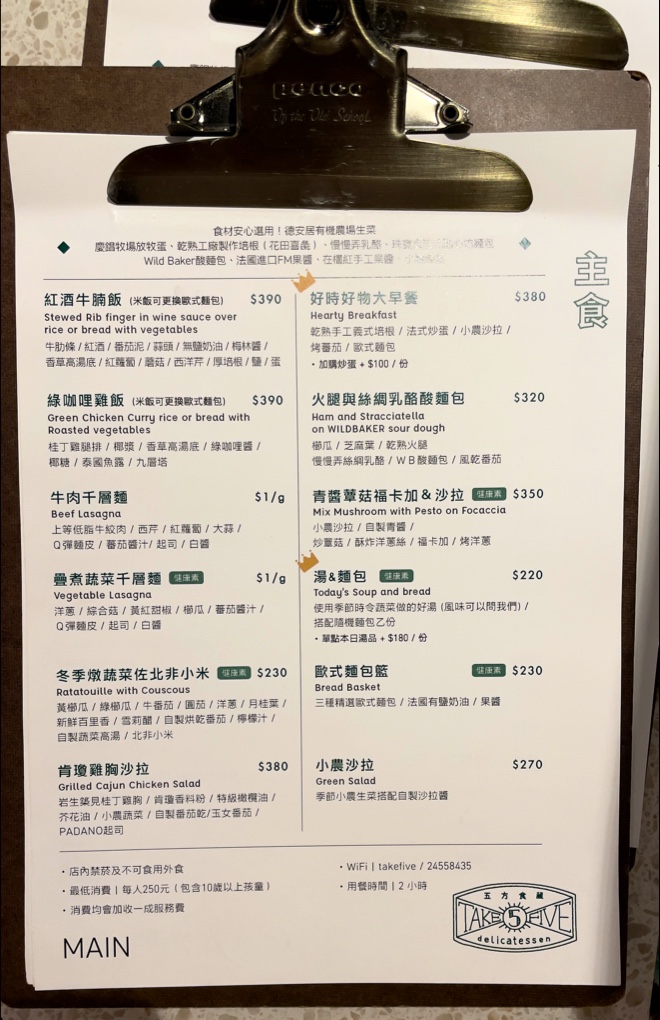 五方食藏:環境舒適,有用餐時間限制,餐點比青田店少,麵包比餐食好吃,讓人最喜歡的是空間設計。 餐點:4 服務:4 氣氛:5