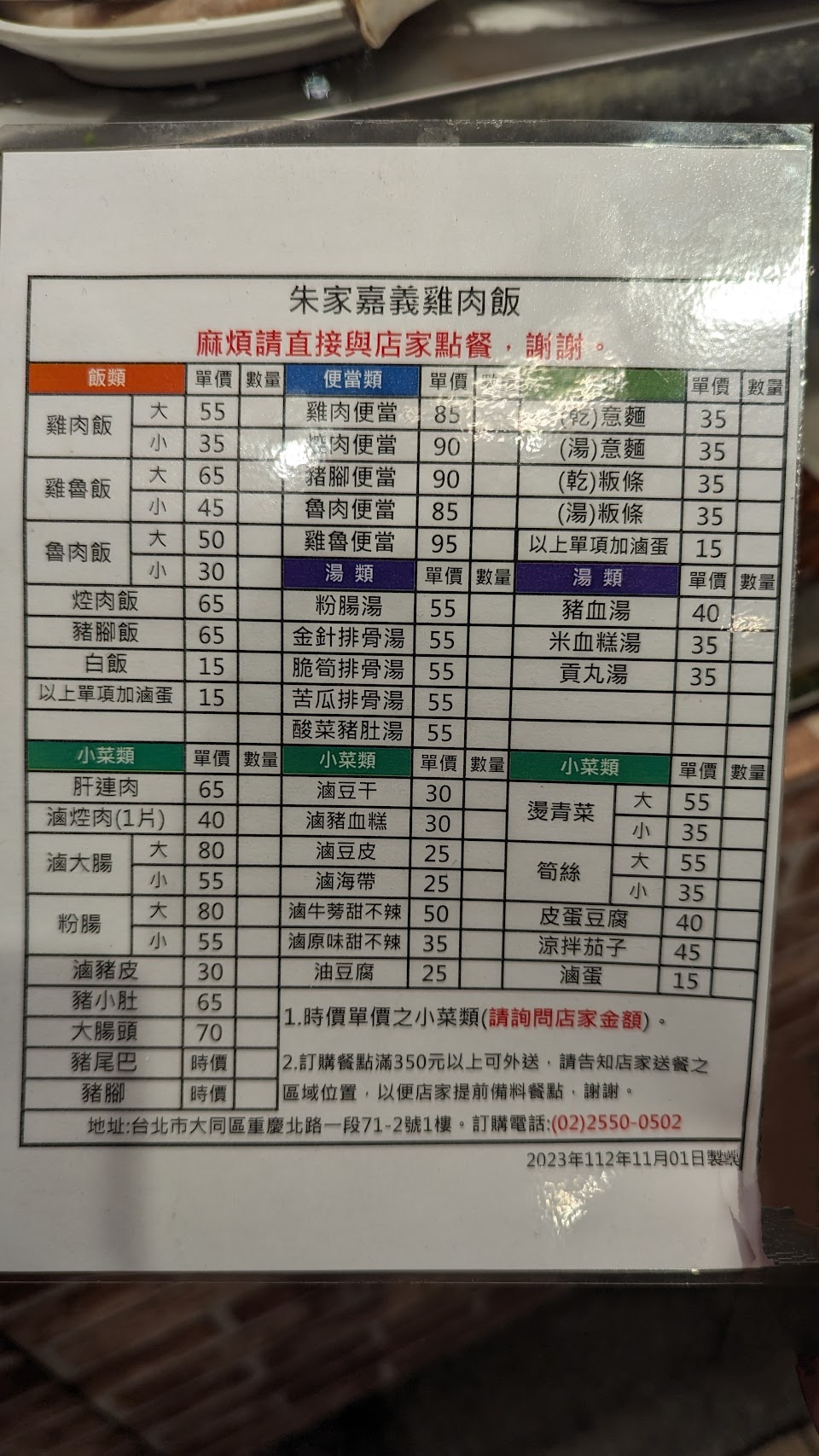 2024最新在地推薦餐廳的菜單_朱家嘉義雞肉飯的菜單、圖片