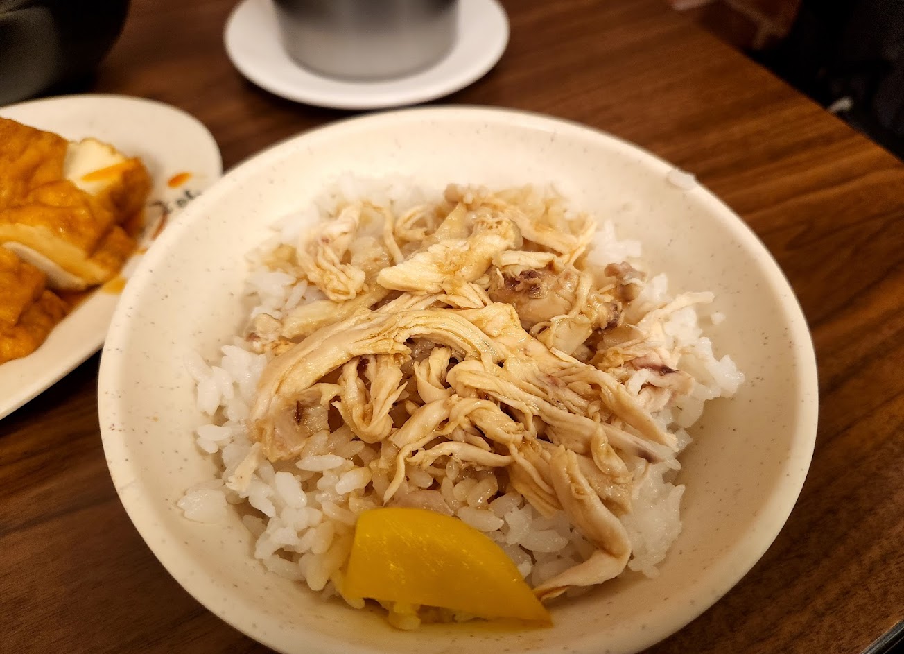 1、雞肉飯:雞肉乾柴、飯偏乾硬,優點不油膩