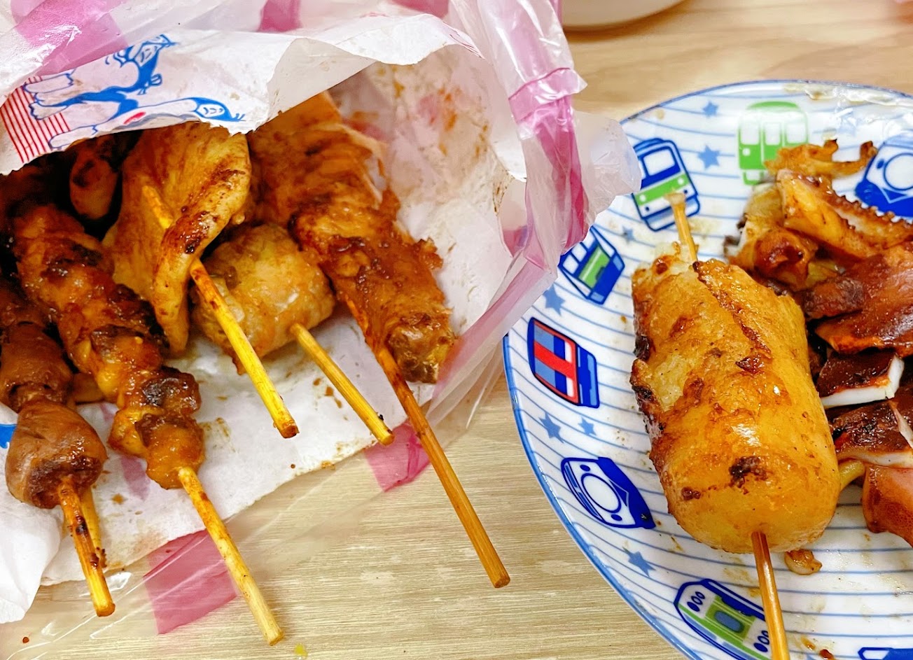 超級好吃的傳統碳烤。多年前第一次吃到雞屁股時簡直驚為天人,是我這輩子吃過烤得最好吃的雞屁股,又香又脆,再噴上檸檬汁真的是絕配。其他品項常買的有豆乾、甜不辣、雞翅跟雞腿,每樣都好好吃,雖然貴了點但還是會常常想念,然後就忍不住去買了。