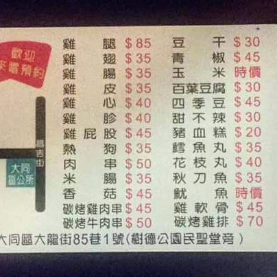 2024最新在地推薦餐廳的菜單_大龍街阿忠碳烤店的菜單、圖片