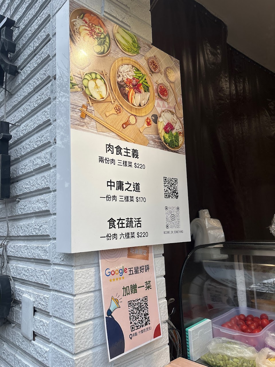 今天點了220元的肉食主義,菜是芥蘭菜、青花菜和筊白筍,沒想到老闆還加碼筍片、花生等,再加水果葡萄,好大一碗!