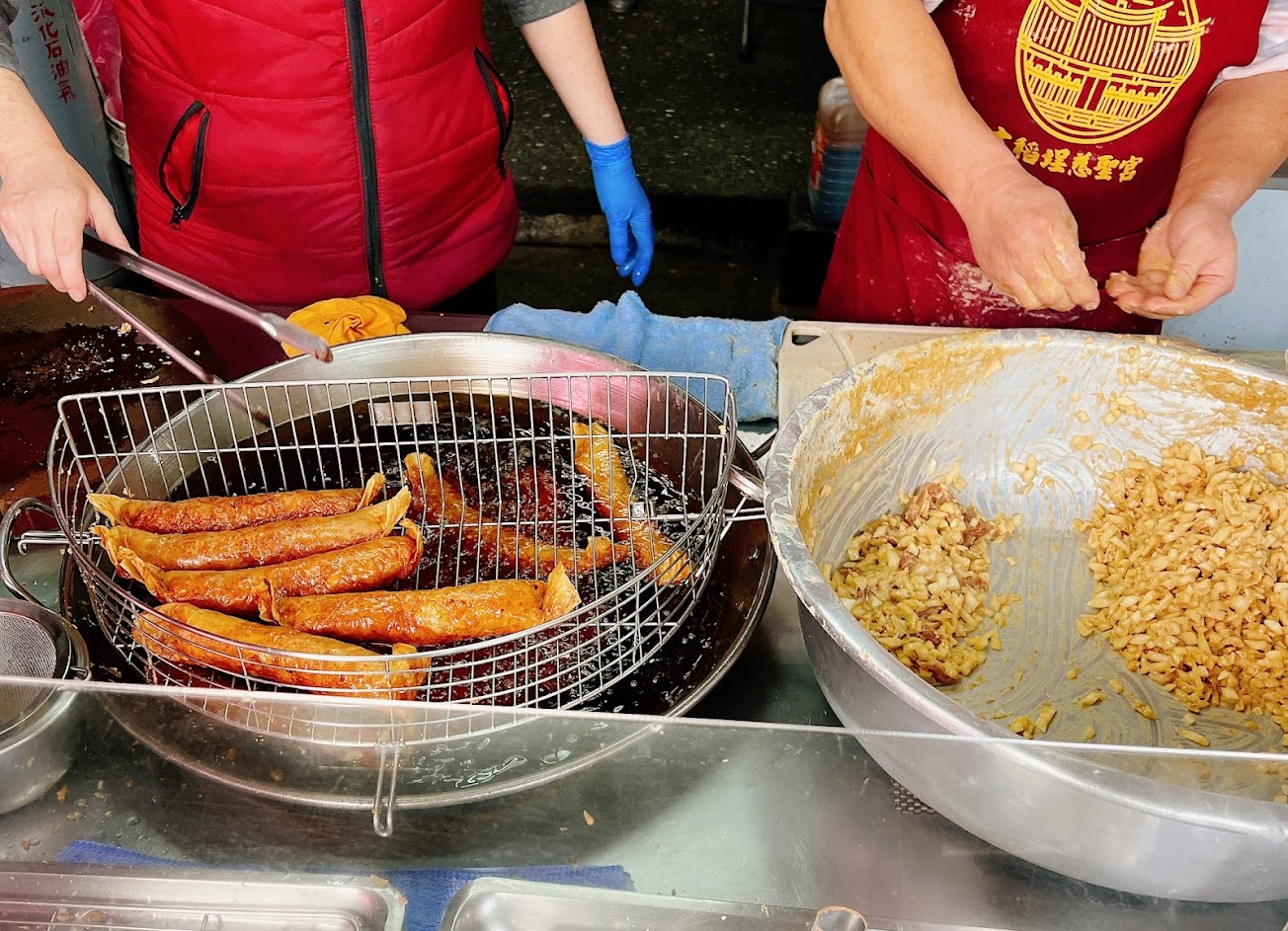 大稻埕慈聖宮這邊好吃的現炸雞捲,熱呼呼大口吃超讚!